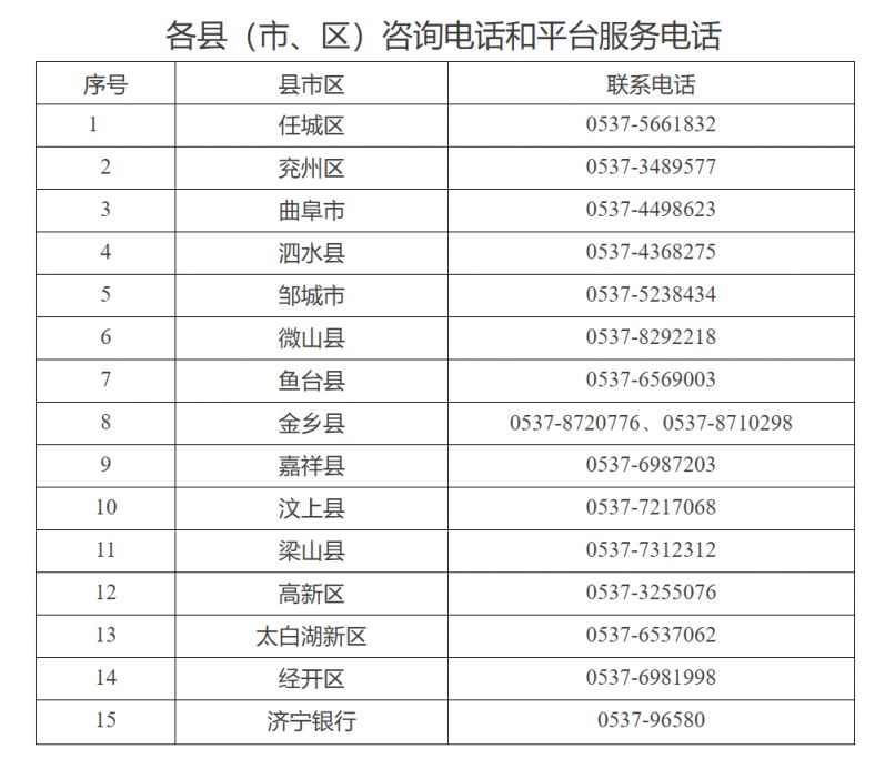 附件:各县(市、区)咨询电话、平台服务电话